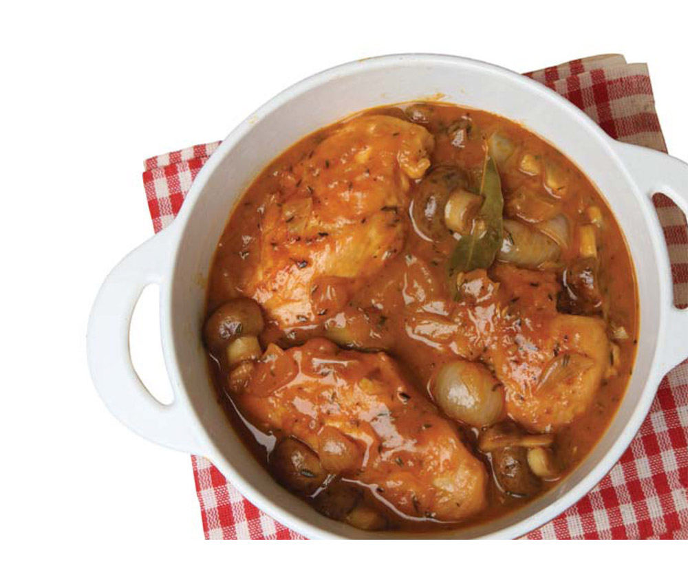 Directions • Heat the oil in a pan over medium heat and add the chicken, skin-side down, until it becomes crispy and has a golden colour, about 5 minutes. • Remove the chicken, pour away any excess fat and then, in the same pan, cook the onions for about 5 minutes until they have some colour. • Add the sweet potato, carrots and mushrooms and then return the chicken pieces to the pan, placing them on top, skin-side up. • Pour the stock until it just reaches the chicken skin, add the thyme and cover with a lid. • Leave to simmer very gently for about 20 minutes until the chicken is cooked through. Cooking time will depend on the size of the chicken pieces. |